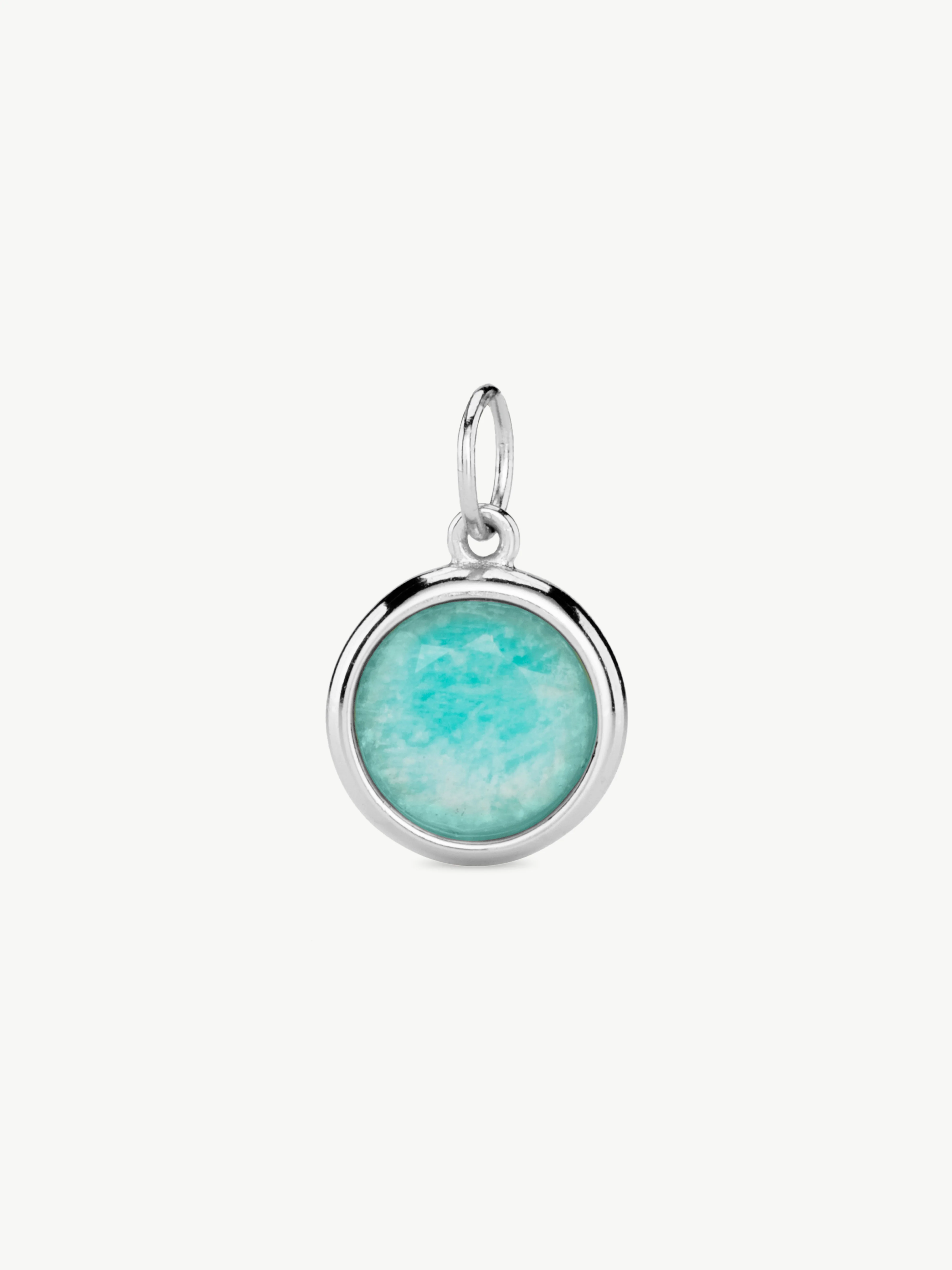 A bezel-set faceted natural amazonite pendant that can be worn on a chain or bracelet of your choice.