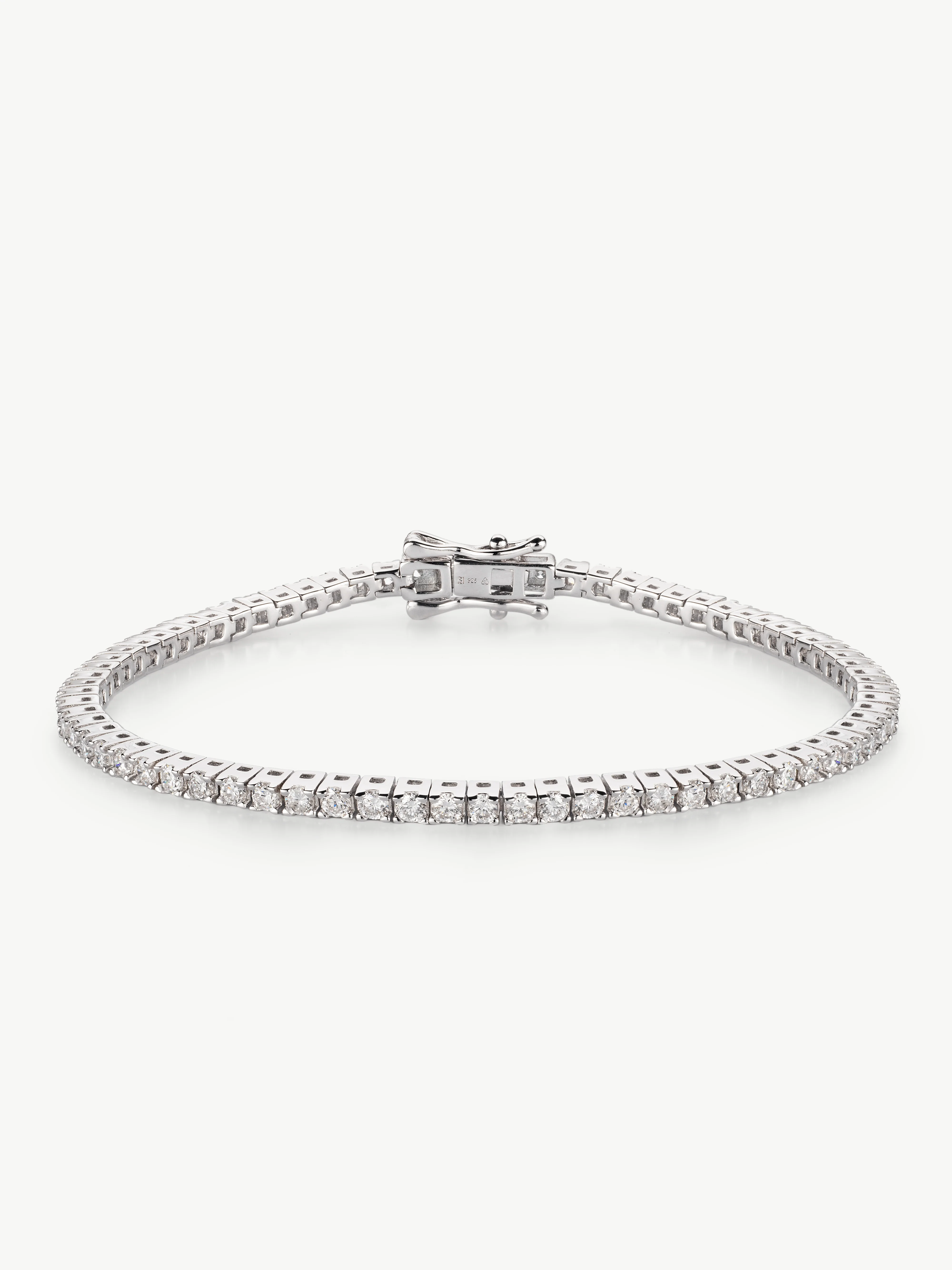 This classic diamond tennis bracelet features a fluid line of hand-set brilliant-cut diamonds. Featuring a double safety clasp for added security.