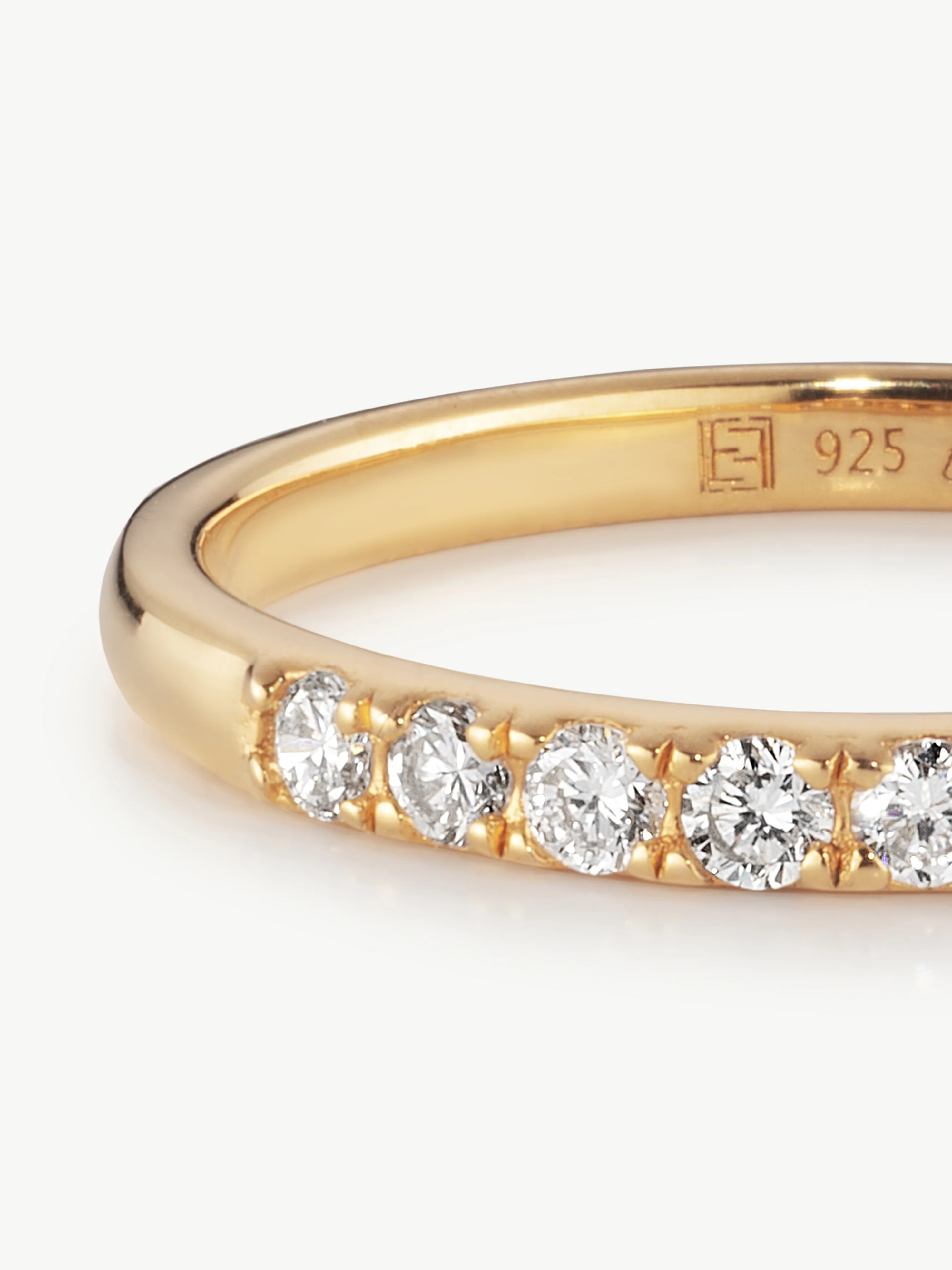 A sleek band set with nine brilliant-cut lab-grown diamonds in the classic eternity style. Perfect for stacking or as a sparkling stand-alone piece.