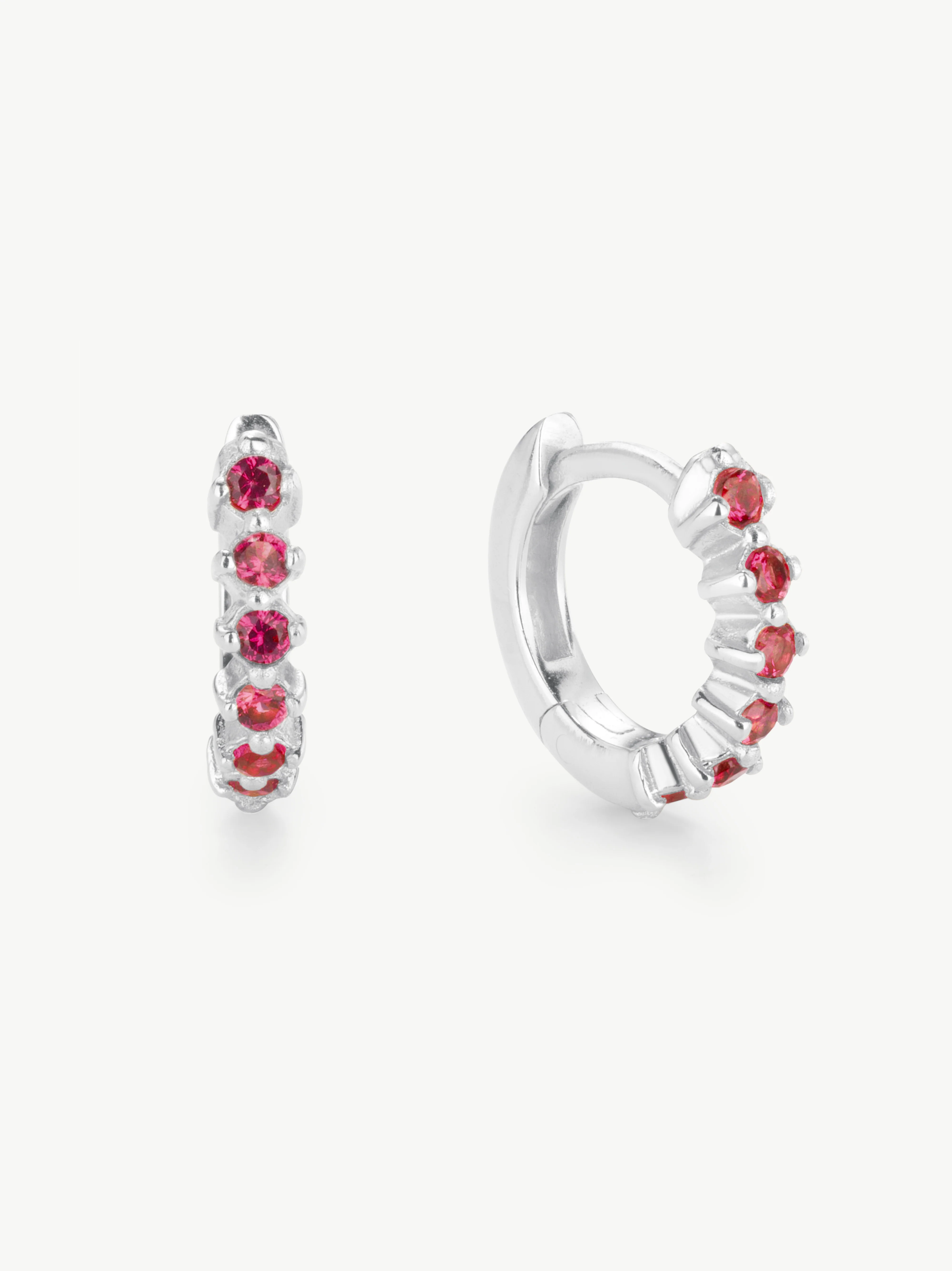 These pretty ruby huggies feature six round rubies in each earring. Perfect to stack or wear alone.