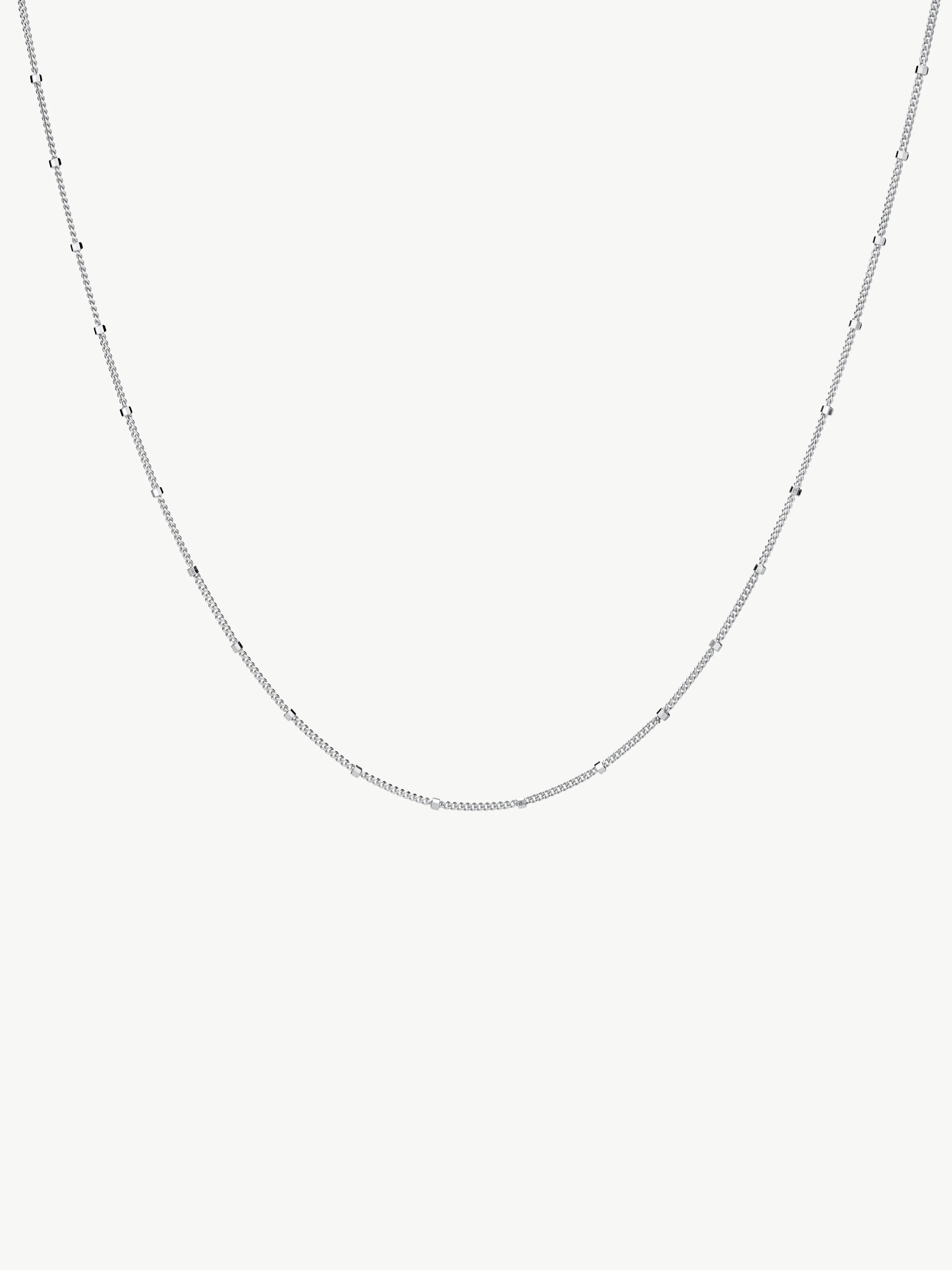 Our satellite Chain features a simple curb chain accented with faceted satellite beads that catch the light with movement. Wear it alone or pair it with a pendant of your choice. Finished with a lobster clasp and our signature L’ERA logo tag.